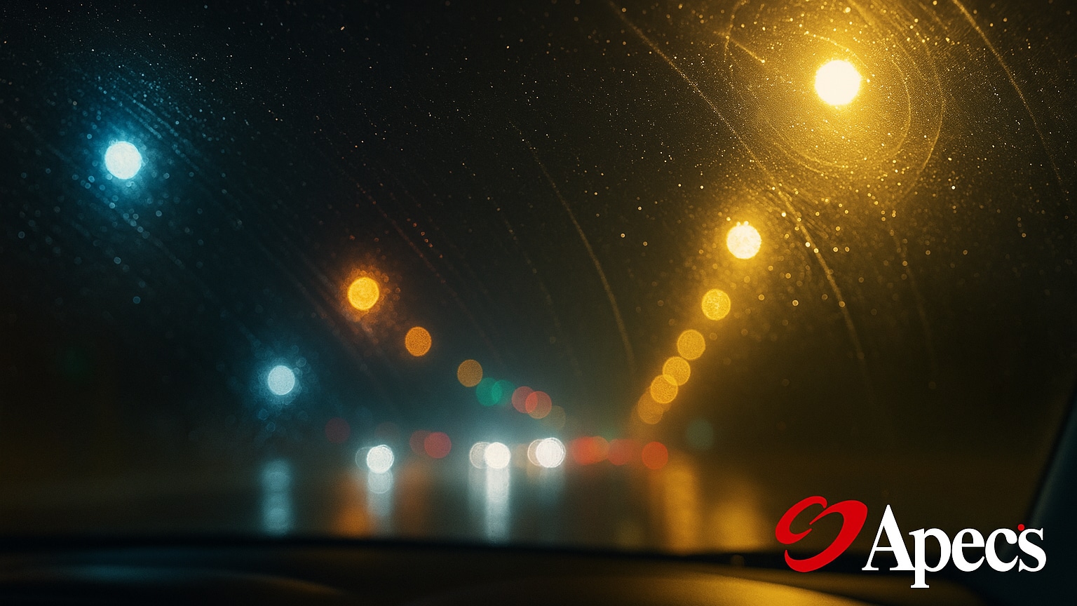 夜の視界不良は、薄い油膜と残留水分が光を散らすことが原因です。